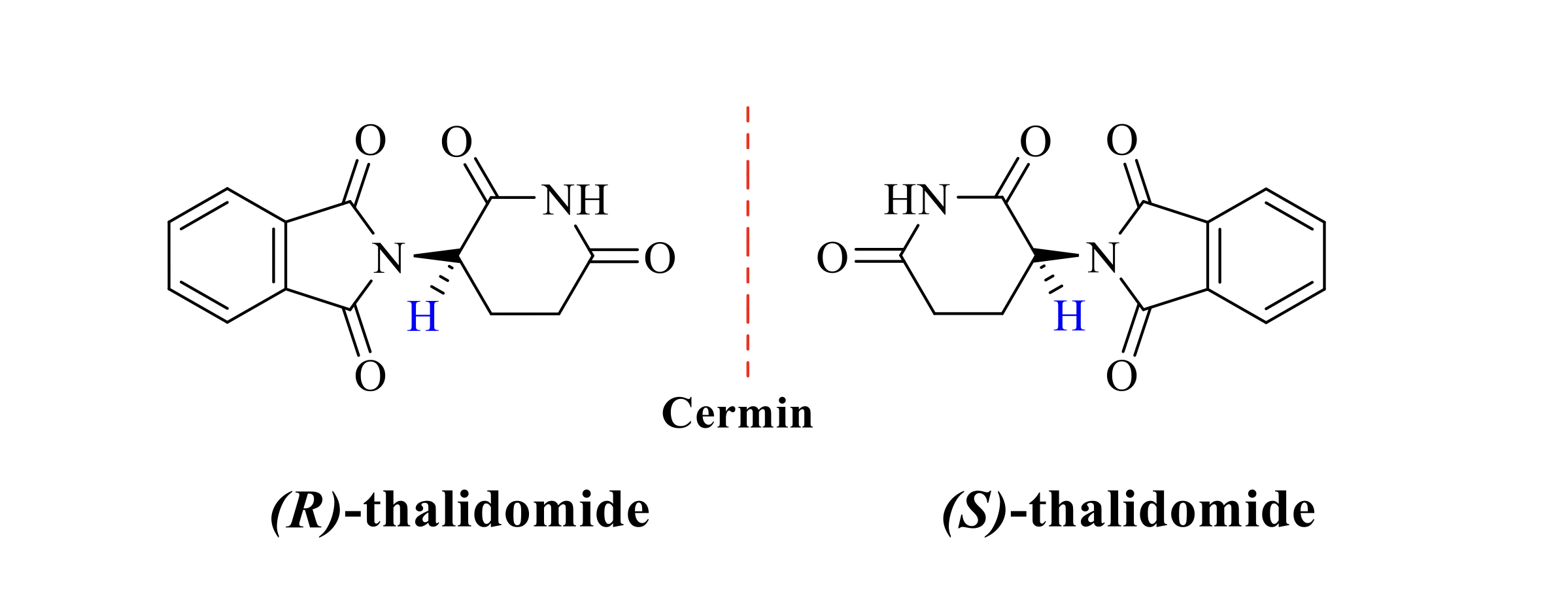 Kajian saintifik lanjutan mendapati thalidomide mempunyai isomer dengan dua sebatian berbeza yang merupakan imej cermin antara satu sama lain. Satu daripada isomernya sangat berkesan untuk mengurangkan mabuk kehamilan. Walau bagaimanapun, satu lagi isomer cerminannya boleh menyebabkan kecacatan kepada bayi!