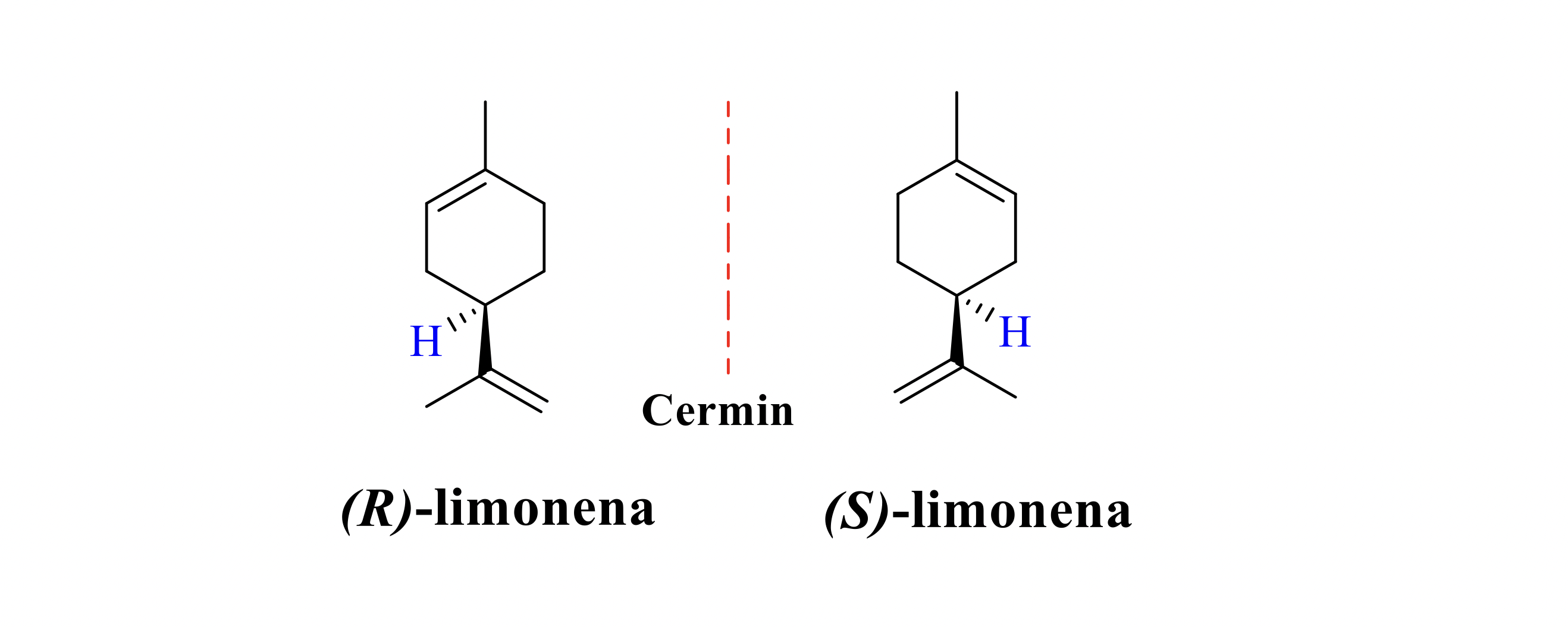 Apakah pula bezanya di antara buah lemon dan oren? Selain warna, tentunya rasa buah tersebut adalah berbeza. Sebenarnya, antara faktor penyumbang kepada rasa oren dan lemon adalah berikutan kehadiran sebatian kimia yang bernama limonena. Limonena turut mempunyai dua isomer di mana isomer (R)-limonena memberikan rasa oren. Manakala, sebatian cerminnya isomer (S)-limonena memberikan rasa lemon pula.