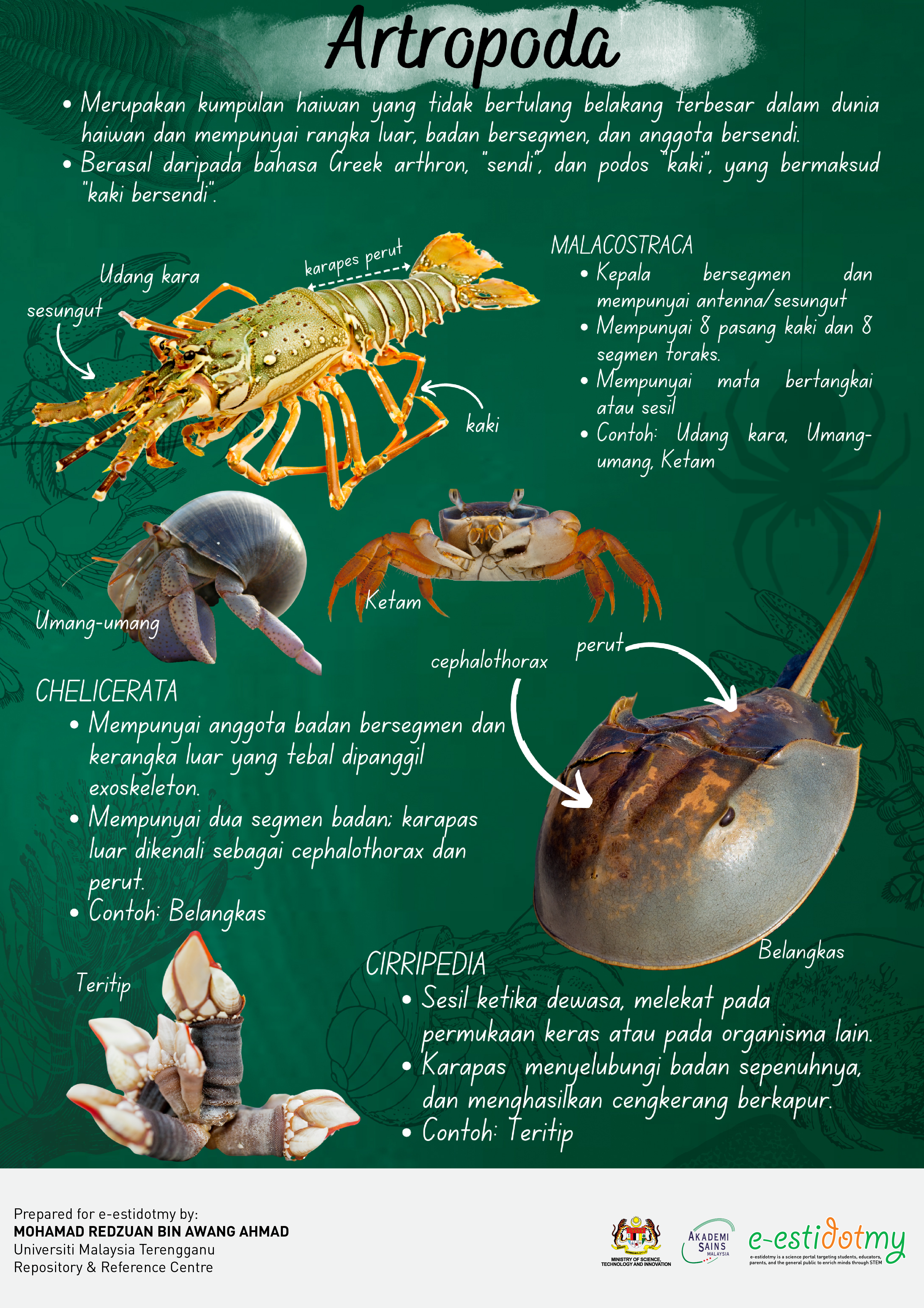 Artropoda ialah kumpulan haiwan invertebrata dengan ciri badan bersegmen dan kaki berlipat. Antara kumpulannya ialah Malacostraca (udang, ketam), Chelicerata (belangkas), dan Cirripedia (teritip) yang memainkan peranan […]