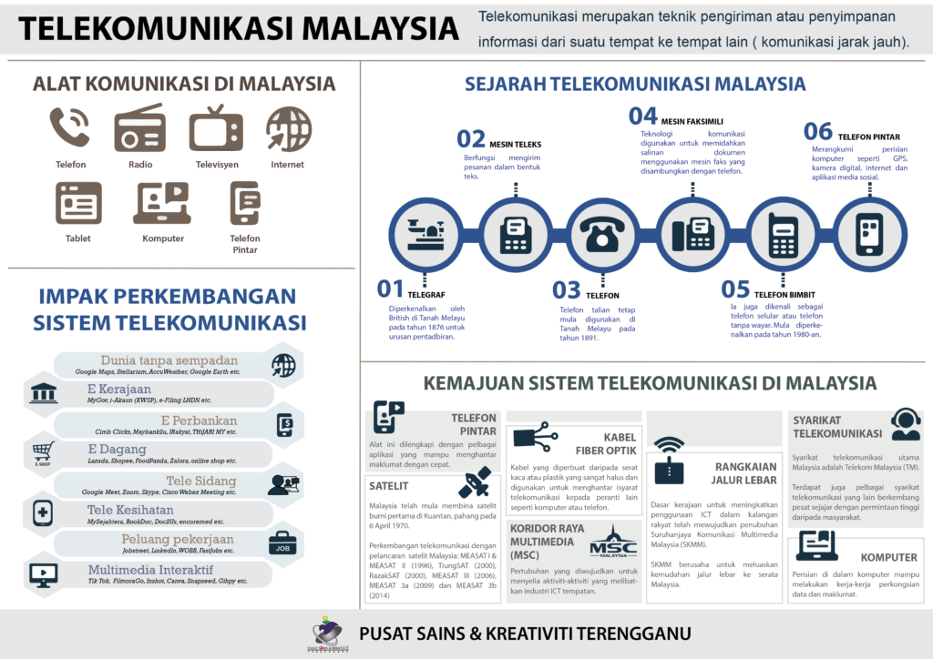 Telekomunikasi menghubungkan kita dalam pelbagai cara. Poster ini memperkenalkan alat komunikasi, sejarah telekomunikasi di Malaysia, kesannya terhadap kehidupan, serta perkembangan sistem telekomunikasi negara dari masa ke […]