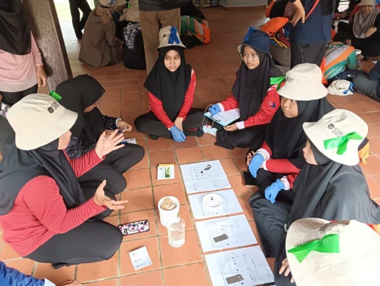 Participants learning about water quality indicators during the 2024 International Bootcamp on Citizen Science organised by UTM. (UTM)