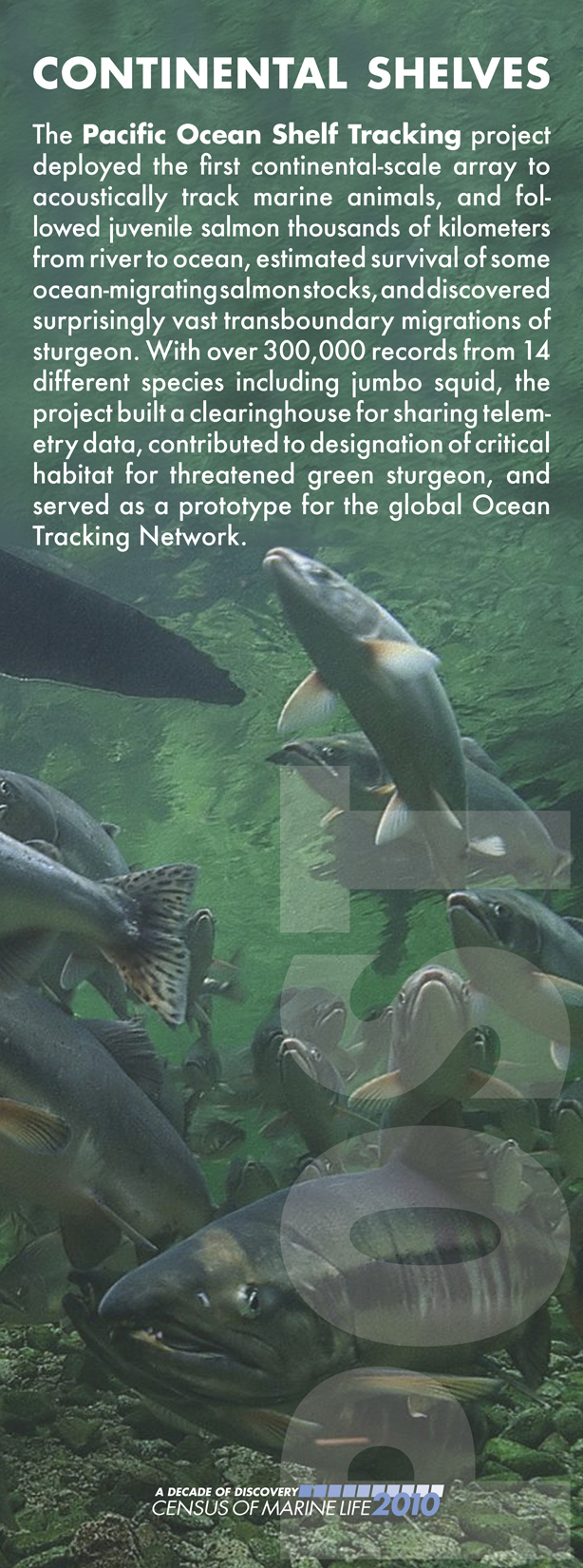 Sebagai contoh, Projek Bancian Hidupan Laut* (Census of Marine Life, atau CoML) telah dijalankan dari tahun 2000 hingga 2010. Projek tersebut telah menggunakan cip yang ditanam di dalam ribuan ikan salmon, tuna dan pelbagai jenis ikan lain untuk menjejak migrasi ikan di Lautan Pasifik.