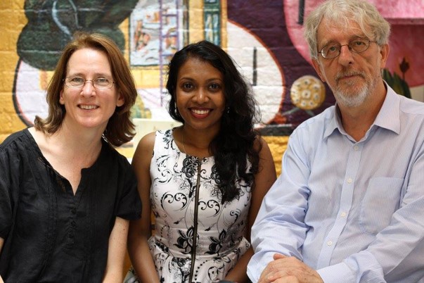 Dr Felicita Fedelis with her PhD supervisors, Prof Nicholas Hunt and Dr Helen Ball