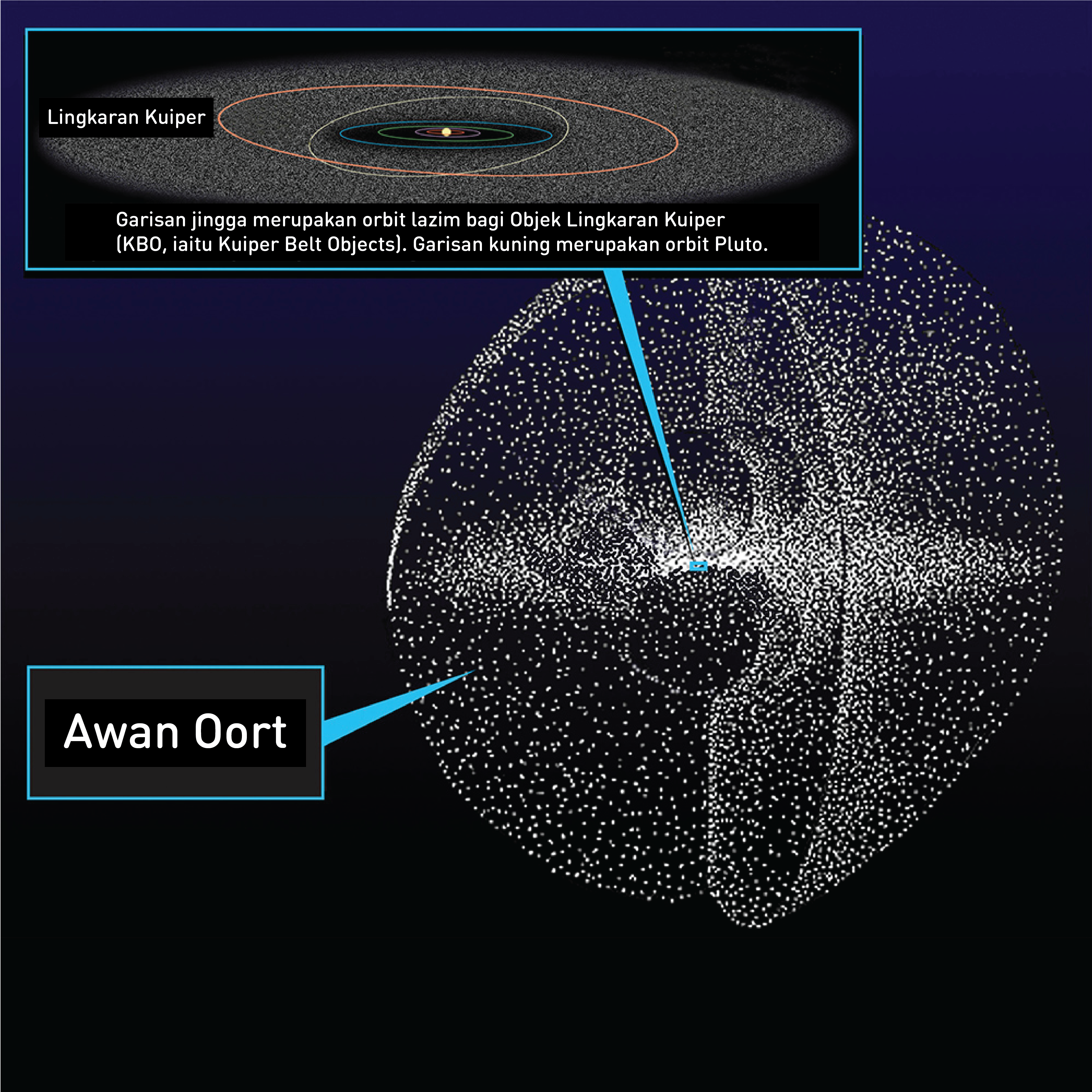 Awan Oort ialah lapisan sfera objek berais yang mengelilingi Matahari pada jarak antara kira-kira 2,000 hingga 100,000 unit astronomi (AU) dari Matahari. Komet jangka panjang (mengambil […]